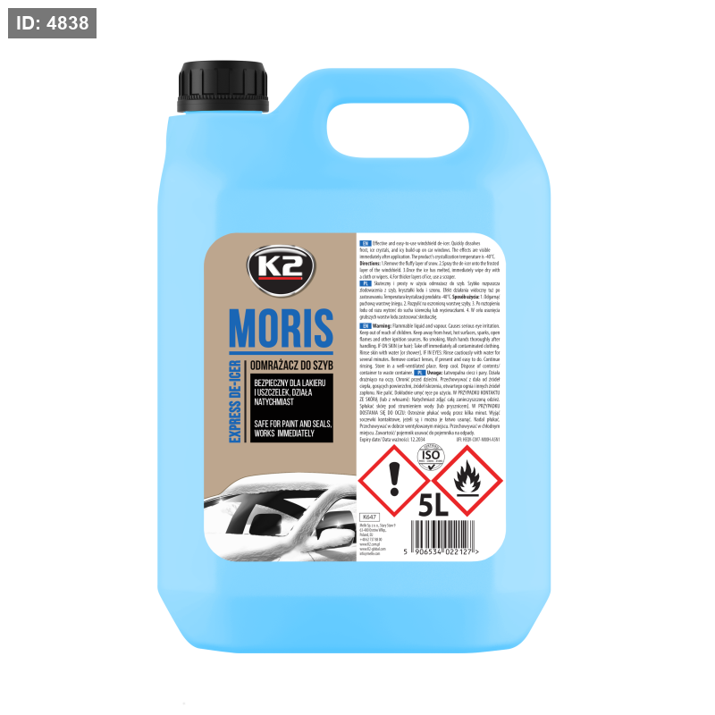 K2 Moris Instant De-Icer هو محلول احترافي قوي لإزالة الجليد والصقيع فورياً من زجاج السيارة في أقسى ظروف الشتاء، ويعمل بكفاءة عالية حتى -40° مئوية.