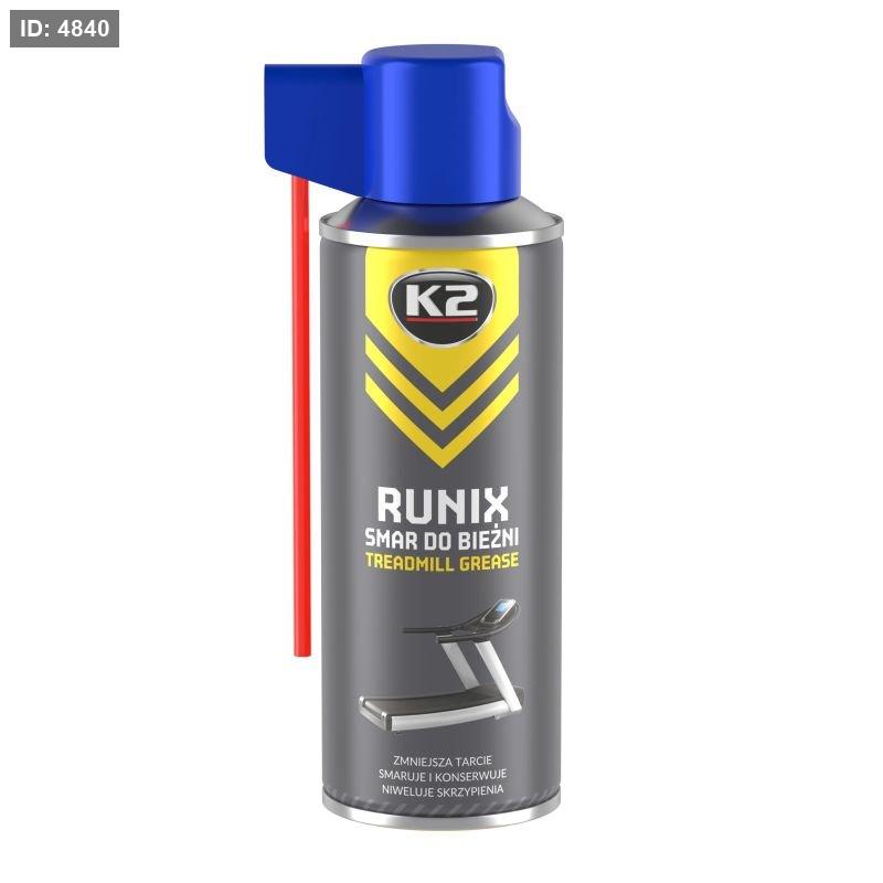 K2 RUNIX هو شحم صناعي شفاف (عديم اللون) عالي الجودة، مخصص لتشحيم جميع أنواع المشايات الرياضية (Treadmills) وكذلك معدات التمارين الرياضية الأخرى.